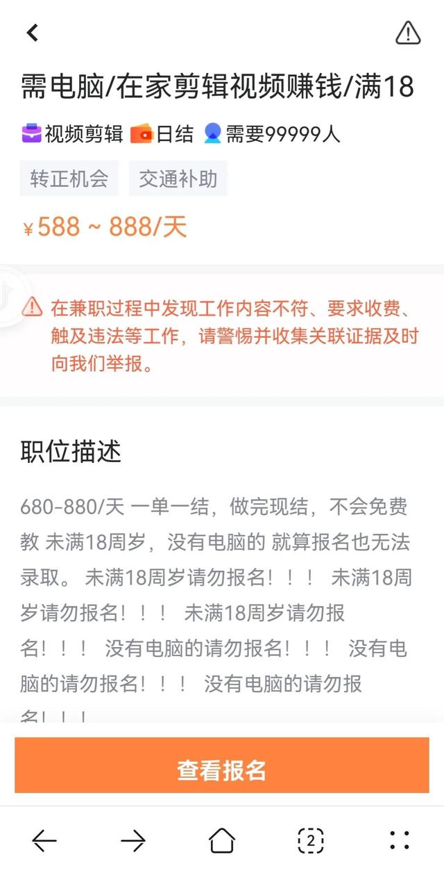 那这些是从机构内部的情况来说的,我们作为他们投放的广告的受众,作为他们的目标,在对他们的这些手段没有了解和防备的情况下,怎么去判断这个所谓的兼职是不是真的呢?