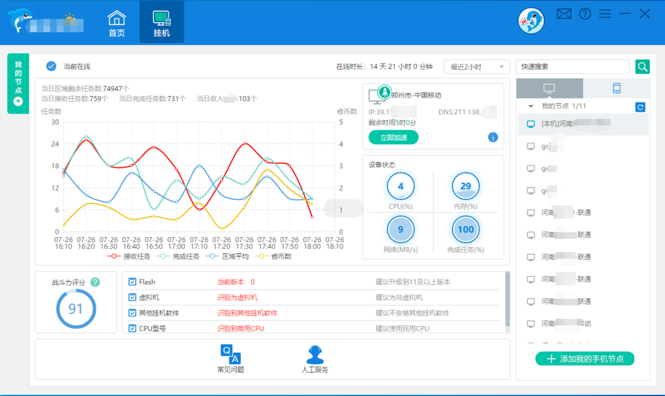 本期副业推荐:睿思挂机项目,支持手机电脑一起挂,支持虚拟机多开,手机挂有10元每G的流量补贴。
